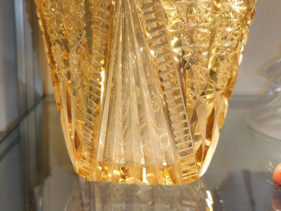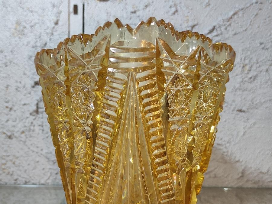Petit vase, ou vide-poche, en cristal ambré de Bohême