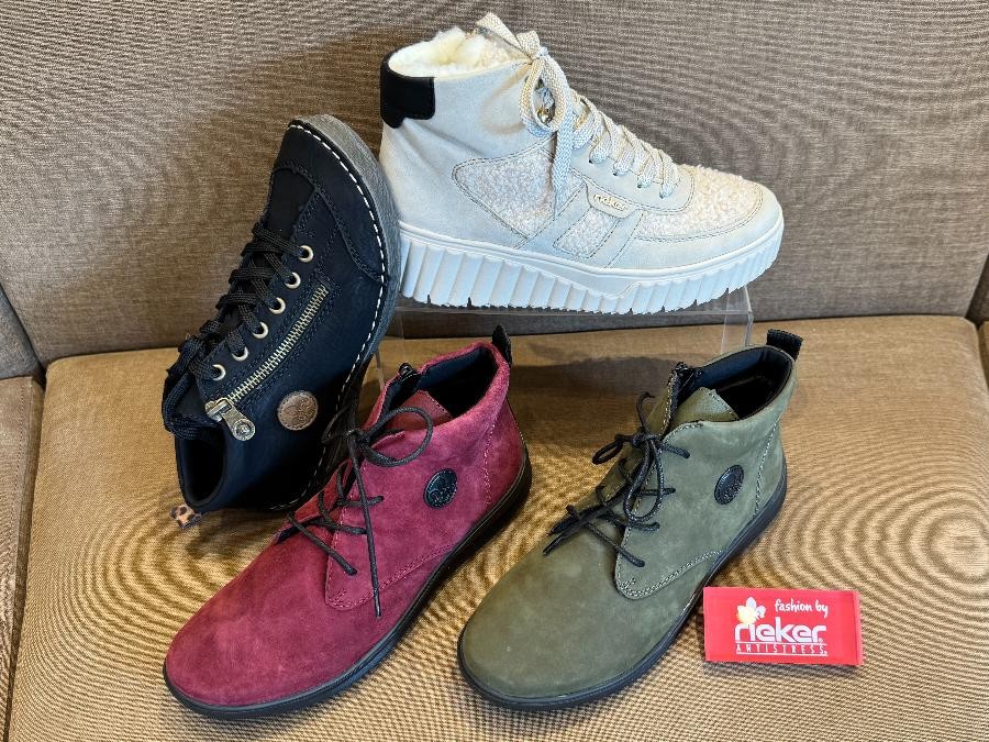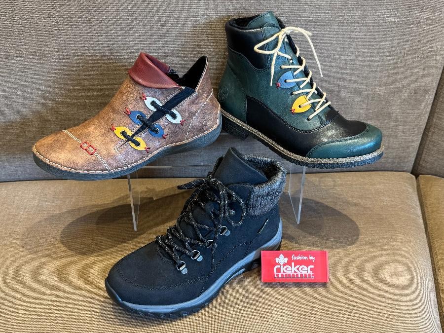 Sylvie D vous propose la gamme RIEKER. Cette marque est spécialiste dans les chaussures à semelles à fort amorti. Leur légèreté et leur souplesse vous surprendont.
