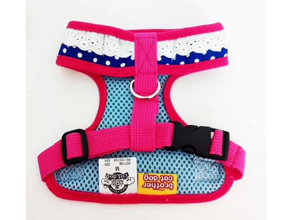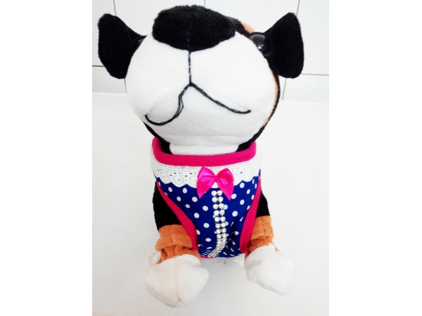 Harnais avec strass, dentelle et petit neud + laisse pour chien Harnais très confortable en tissus 100% coton avec sa laisse assortie.