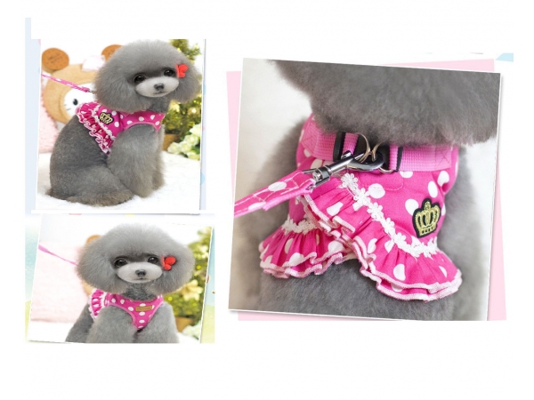 Harnais robe + laisse - tissus écossais pour chien Harnais très confortable en tissus coton 35% / polyester 65% avec sa laisse assortie.