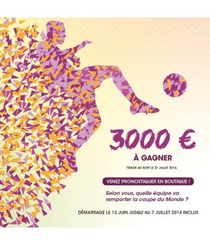 Vapostore vous fait gagner 3000 € !!! Du 12 juin au 7 juillet inclus, pronostiquez l'équipe qui remportera la finale de la Coupe du Monde en remplissant votre bulletin dans votre Vapostore préféré ! Tirage au sort le 21 juillet 2014