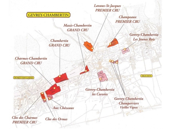 Le Charmes-Chambertin est un de ces 9 Grands Crus. Il est installé sur les affleurements de marnes bajociennes, que recouvre un revêtement d'éboulis peu épais et d'excellents limons. Les sols bruns calcaires se sont élaborés sur ces colluvions Superficie : 0,57 hectare Elevage : Elevage 15 mois en fûts neufs