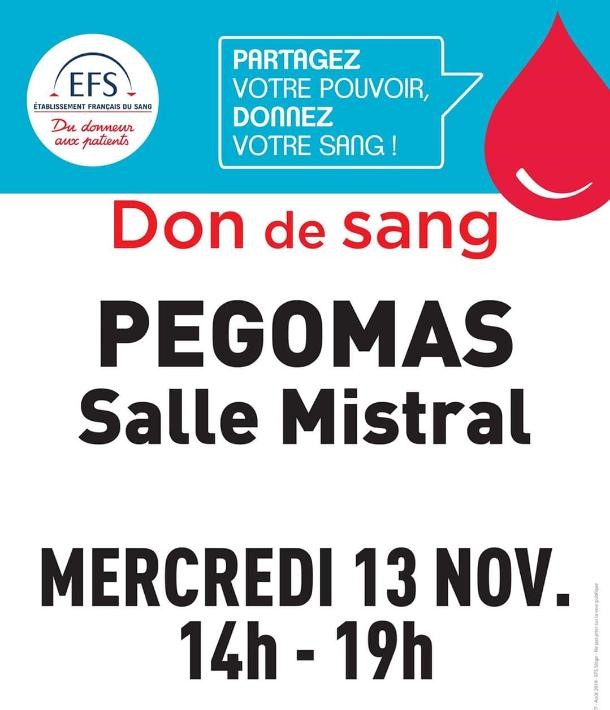 Aujourd'hui dès 14h rdv à la salle Mistral de PEGOMAS pour faire un don.