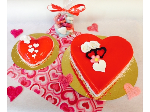 Pour l'occasion de la St-Valentin nous proposons des cœurs composés soit de mousse à la fraise ou fruits rouge. Nous pouvons réaliser ce gâteaux tout le long de l'année mais uniquement sur commande.