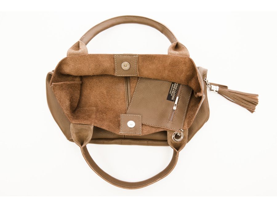 Réalisé en cuir grainé souple et épais, vous pourrez aussi bien porter ce sac à la main qu'à l'épaule. Il dispose d'une pochette assortie.