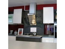 Dimensions Largeur 90 cm Inox et verre Securit Déflecteur et fût en inox brossé mat Hotte murale pour montage entre meubles hauts ou seule contre un mur Commande Touches micro-contact et diodes pour marche/arrêt, réglage de l'éclairage et de la puissance Témoin de saturation des filtres à graisse (programmable), Arrêt différé de fin de fonctionnement (5/15 min) Arrêt automatique du Booster programmable (10 min) 4 allures d'aspiration dont 1 Booster Compatible Con@ctivity Puissance moteur Evacuation Ã? 150 mm selon norme EN 61591 Booster: 640 m³/h, 63 dB(A) re 1 pW (Pression acoustique: 50 dB(A) re 20 µPa) 3ème vit.: 400 m³/h, 52 dB(A) re 1 pW (Pression acoustique: 39 dB(A) re 20 µPa) 2ème vit.: 300 m³/h, 47 dB(A) re 1 pW (Pression acoustique: 35 dB(A) re 20 µPa) 1ère vit.: 200 m³/h, 39 dB(A) re 1 pW (Pression acoustique: 26 dB(A) re 20 µPa)