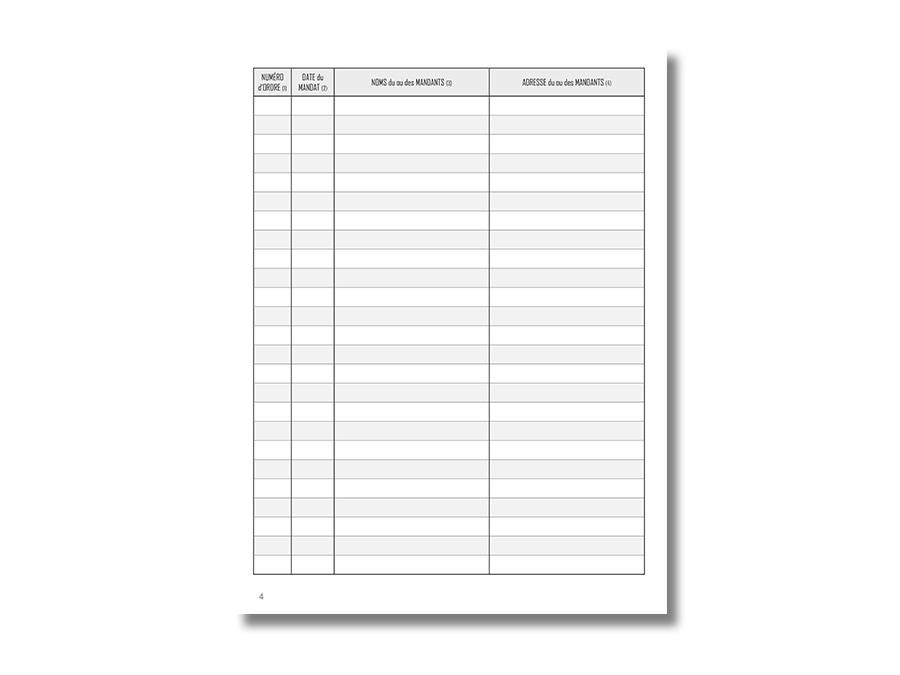 Respectez vos obligations légales grâce à ce registre des mandats conforme à l'article 72 du Décret n° 72-678 du 20 juillet 1972 et modifié par l'article 42 du Décret n° 2005-1315 du 21 octobre 2005.
