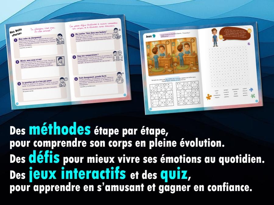 Chaque thème est accompagné d’un mini-guide en 5 étapes simples à suivre. Objectif : l’aider à comprendre les changements de son corps et à affronter l’adolescence avec plus de repères et de sérénité.