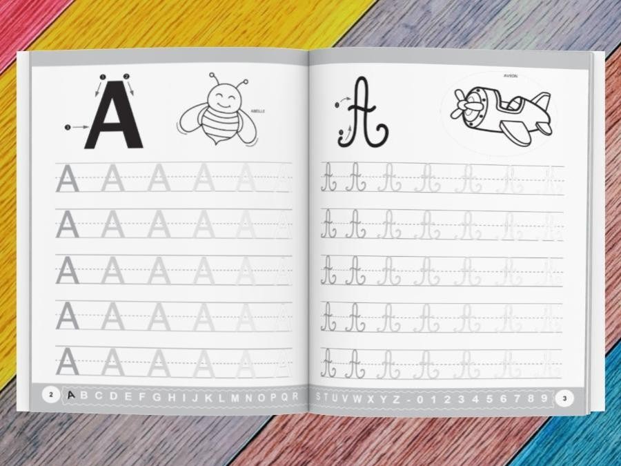 Avec ce grand cahier d'Écriture Cursive et de Coloriage, votre enfant va pouvoir s'entraîner à former progressivement les lettres en majuscule, en minuscule et les chiffres, grâce aux lignes et aux modèles de lettres qui disparaissent au fur et à mesure.