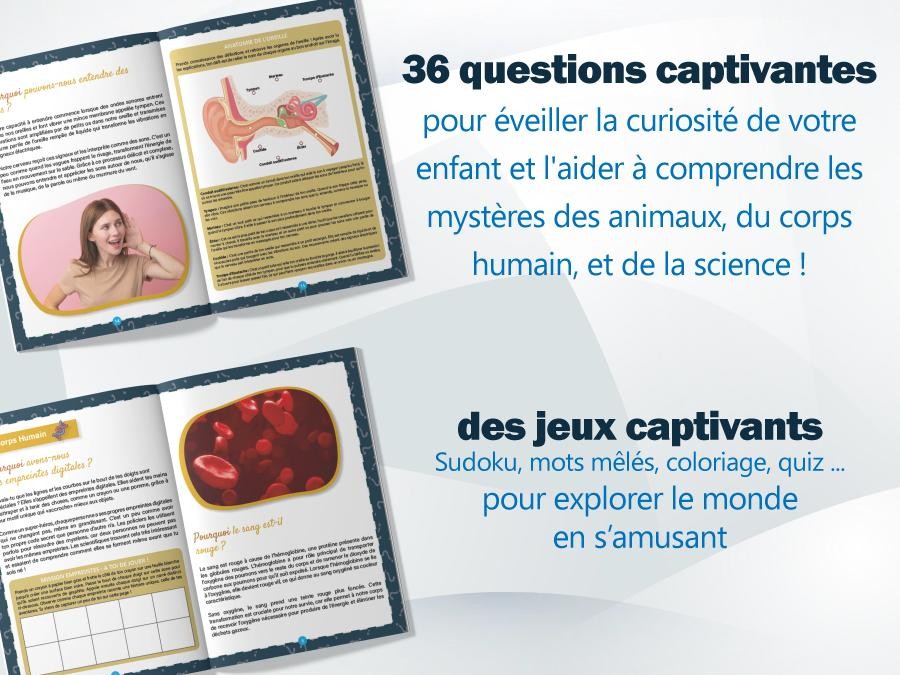 - Favorise l'éveil et l'émerveillement : Chaque question résolue permet à votre enfant de s'émerveiller face aux mystères du monde, nourrissant ainsi son imagination et son intérêt pour la connaissance.