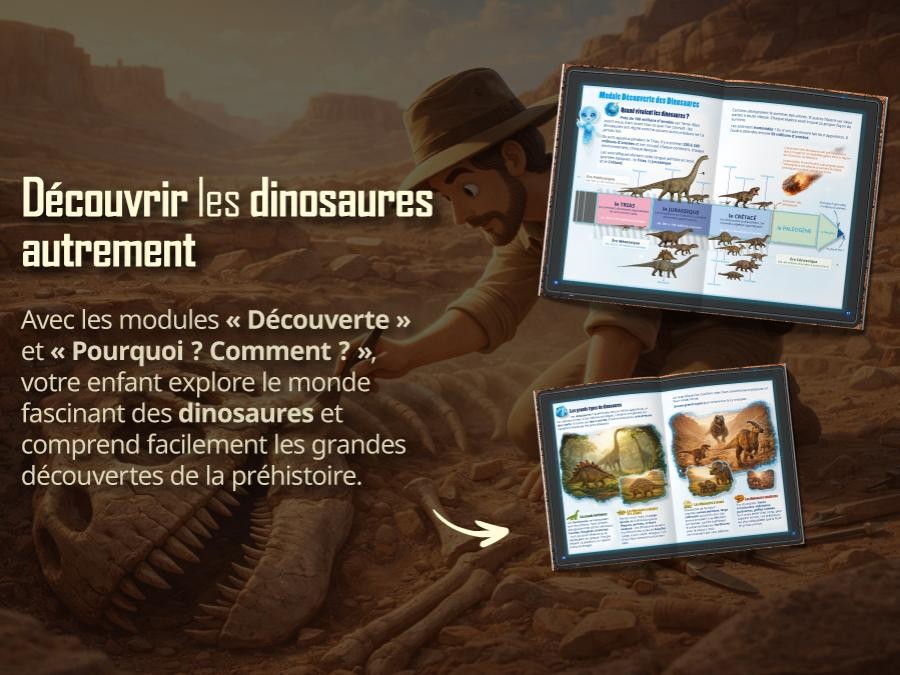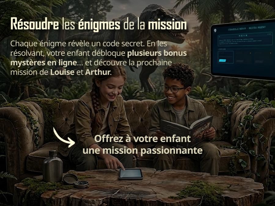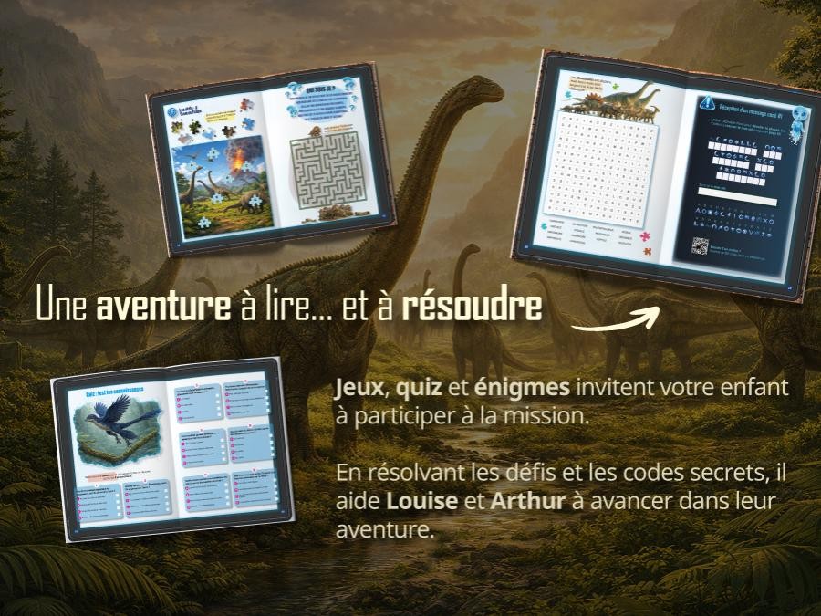 Louise & Arthur – Mission Dinosaures est le n°1 d’une collection d’aventures éducatives et interactives. Ce livre dinosaure est conçu pour les enfants de 8 à 12 ans (CE2–CM2), fille comme garçon. C’est aussi un livre sur les dinosaures idéal pour un livre des enfants curieux : il convient très bien dès 8 ans (livre enfant 8 ans) et plaît aussi autour de 10 ans (livre enfant 10 ans).