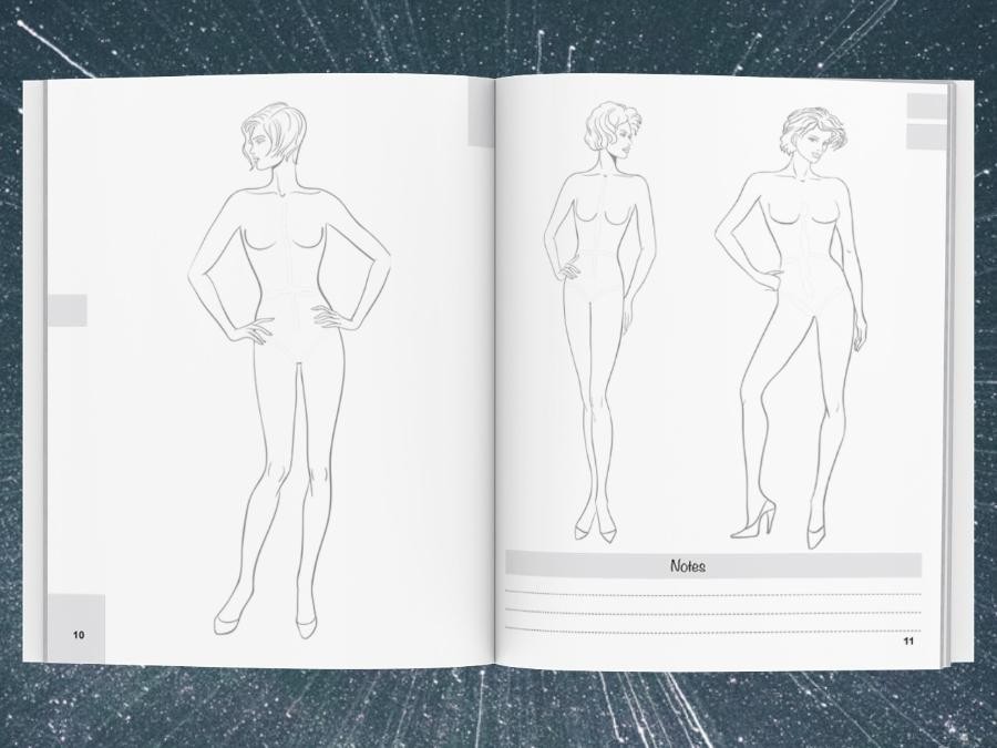 Laissez exploser toute votre créativité et dessinez toute une collection de vêtements à la mode ! Dans ce beau cahier, vous trouverez 9 figurines de mode avec des postures différentes pour démarrer tous vos projets. Vous gagnez un temps précieux à ne pas reproduire vos silouhettes et vous vous concentrez sur vos créations.