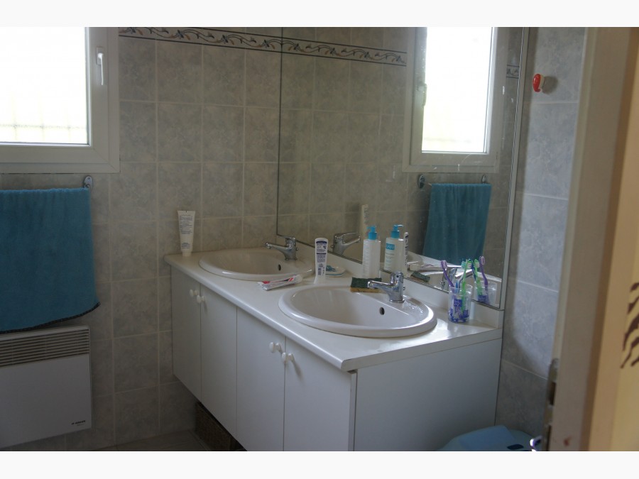Maison des années 2000 avec double vitrage et chauffage électrique.