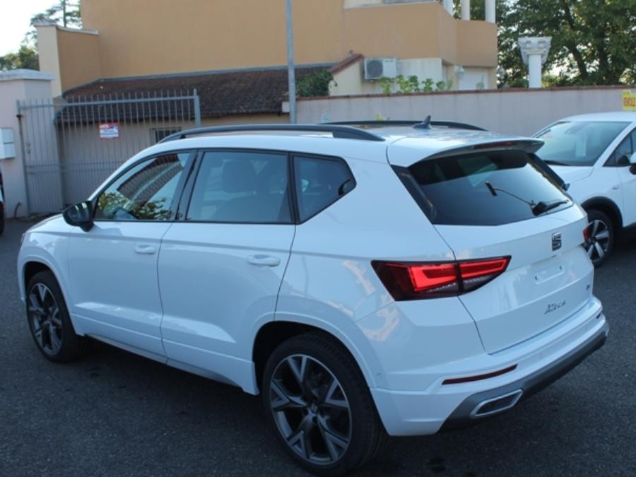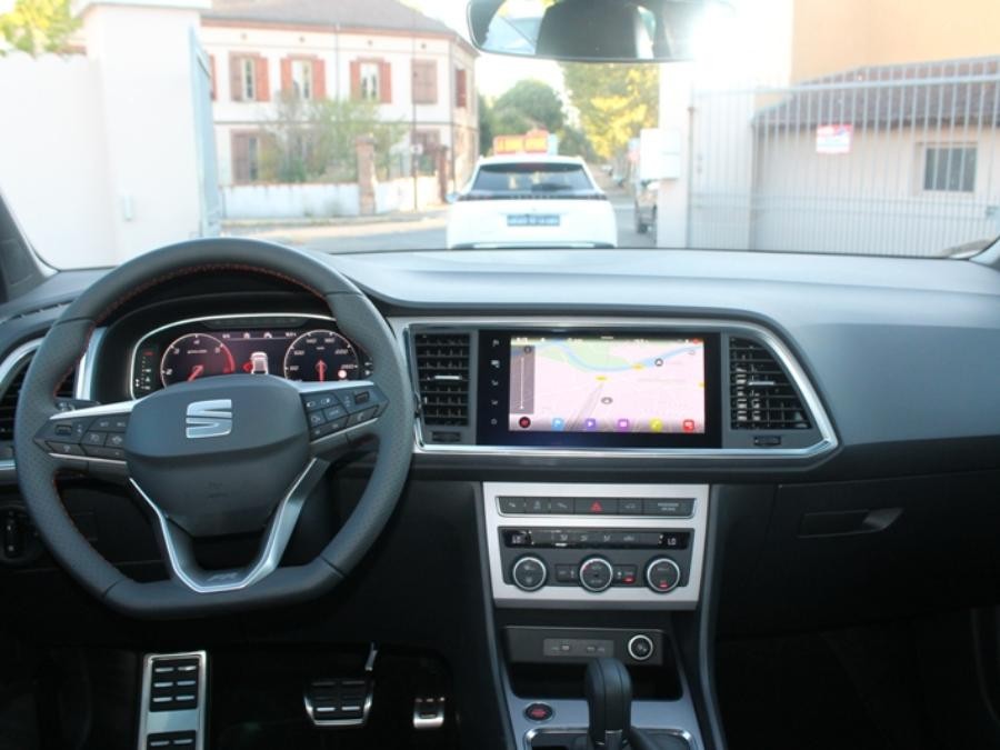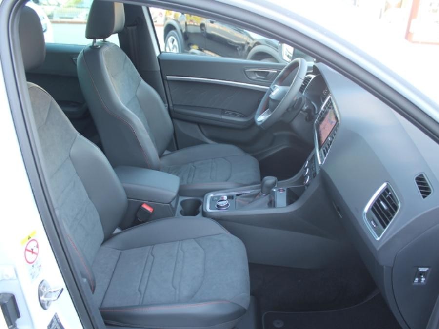 MY 22 – Système de navigation Navi System avec écran tactile 9,2″ – Full Link (Mirror Link – Apple Car Play – Android Auto) – Top view camera 360° – Système d’aide au stationnement arrière – Sellerie en suédine noire / similicuir noir avec surpiqûres rouges – Climatisation automatique Climatronic bi-zone – Keyless Access (accès et démarrage mains-libres) – Hayon électrique avec fonction d’ouverture mains-libres Virtual P edal – Projecteurs Full LED – Feux arrière LED – Projecteurs antibrouillard avant à LED – Rétroviseurs extérieurs dégivrants et rabattables électriquement – Vitres arrière sur-teintées – Rails de toit et entourages de vitres Noir – Rétroviseur intérieur électro-chrome – Front Assist : système de surveillance périmétrique avec fonction de freinage de secours en ville – Détecteur de fatigue – Régulation adaptative du châssis DC C – SEAT Drive Profile Détecteur de pluie & luminosité – Frein à main électrique – Vitres avant et arrière électriques – Aide au démarrage en côte (HHC ) Système Start-Stop – Passages de roues couleur carrosserie – Pack Design FR comprenant sabot de protection avant, diffuseur arrière et inserts latéraux Gris Cosmique – Contour de calandre et coques de rétroviseurs Gris Cosmique – Ciel de pavillon noir – Réglage en hauteur des sièges conducteurs et passagers – Accoudoir central à lavant avec compartiment de rangement – Accoudoir central à l’arrière – Volant en cuir perforé avec surpiqûres rouges et logo FR – Pédalier sport en aluminium – Éclairage d’intérieur Advanced Ambient Light – Seuils de porte avant FR en aluminium rétro-éclairés – Antenne de toit type « requin » – Prise 12 V à lavant – 2 prises USB-C – Digital Cockpit : combiné d’instruments digital haute résolution de 10,25″ – Radio numérique DAB Bluetooth – Connectivity Box avec chargeur à induction – SEAT CONNECT