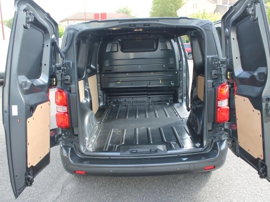 Moduwork sur banquette passager 2 places compend la tablette ecritoire, le rangement central, le siege lateral droit relevable, la trappe de charge longue sous banquette passagers