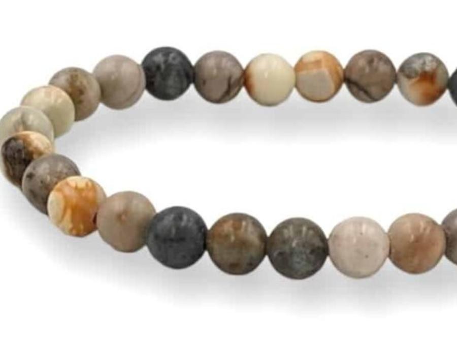 Bracelet Jaspe feuille d'argent 6mm