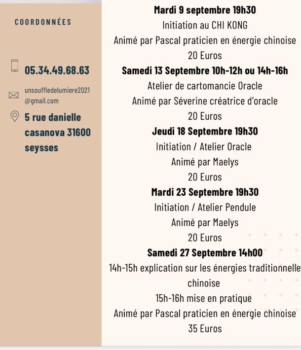 Samedi 13 Septembre 10h-12h ou 14h-16h