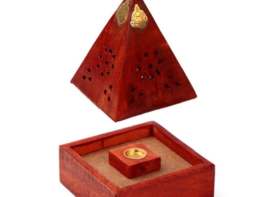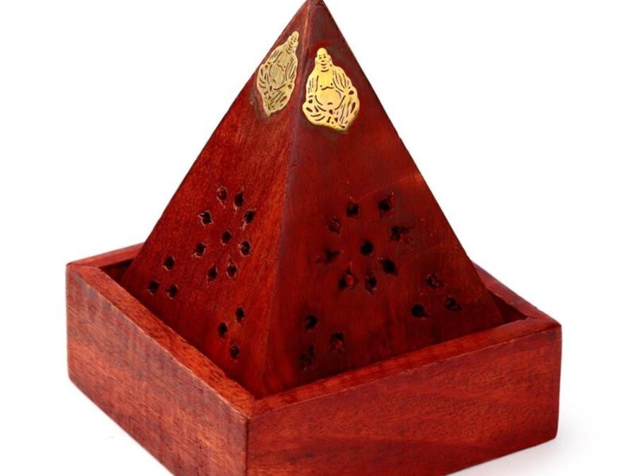 Brûleur d'Encens pyramidal en Bois de manguier ajouré Boudha