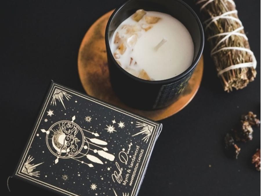 Créez une ambiance spirituelle et apaisante avec la Bougie Parfumée Esoteric Boho Dreams. Cette bougie marie la richesse sacrée de la myrrhe, reconnue pour ses vertus purifiantes, et la chaleur boisée du bois de santal, qui invite à la relaxation et à la méditation. Fabriquée à partir de cire naturelle et d’une mèche en coton pour une combustion propre, elle est également enrichie de cristaux de roche, connus pour leurs propriétés amplificatrices d’énergie. Le cristal de roche aide à équilibrer l’énergie et à favoriser la clarté mentale, apportant ainsi une dimension spirituelle à votre espace. Idéale pour purifier l'air et instaurer une ambiance propice à la détente, à la méditation ou à la relaxation, cette bougie transformera votre intérieur en un sanctuaire de sérénité et d'harmonie.
