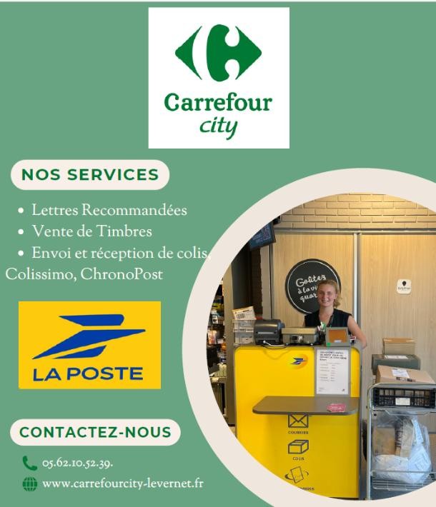 Pour faciliter votre quotidien, votre Carrefour City du Vernet propose également les services de La Poste directement en magasin. Vous pouvez ainsi envoyer vos lettres recommandées, acheter vos timbres, et même expédier ou recevoir vos colis en toute simplicité grâce aux solutions Colissimo et Chronopost. Plus besoin de courir dans tous les sens, tous vos besoins postaux sont pris en charge ici, au cœur de votre épicerie de proximité.