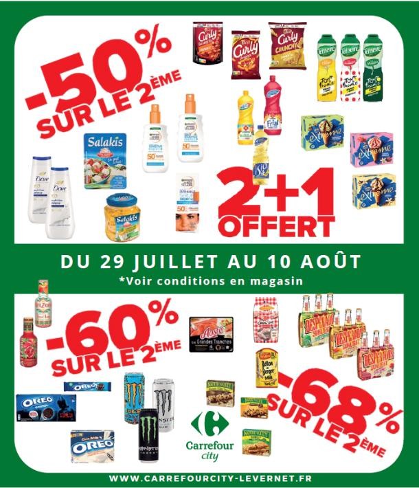 Profitez d'offres exceptionnelles dans votre Carrefour City du Vernet ! Du 29 juillet au 10 août, découvrez une sélection de produits en promotion pour faire le plein tout en maîtrisant votre budget. Attention : toutes les offres sont valables hors conditionnements promotionnels, dans la limite des stocks disponibles en magasin. La remise s’applique automatiquement sur le produit le moins cher. Toutes les conditions sont à consulter sur place.
