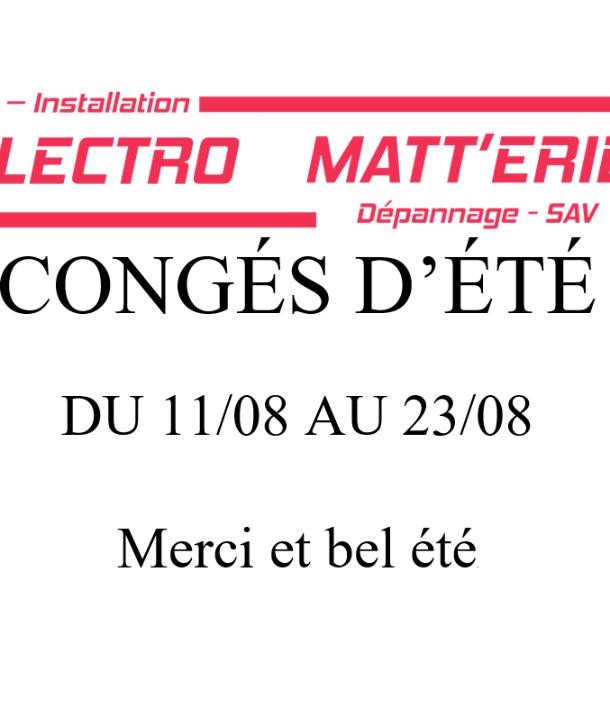 [ 🌞FERMETURE]ELECTRO MATT'ERIEL ferme ses portes pour la semaine du 15 août.Nous avons hâte de vous retrouver à partir du 23/08 pour vous faire découvrir d'autres nouveautés et opérations spéciales !Bel été